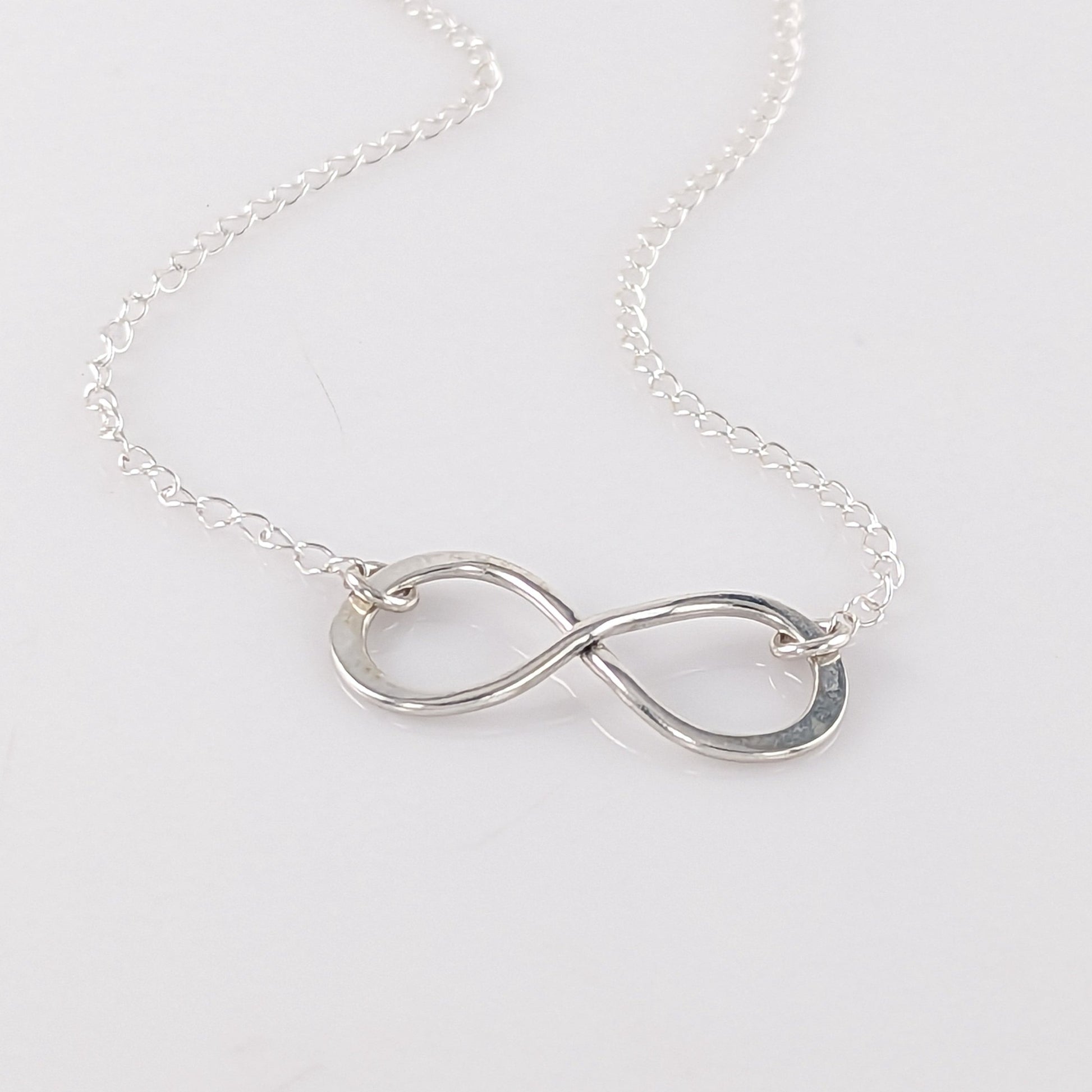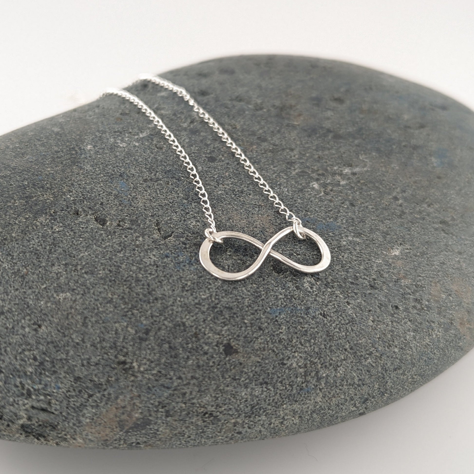 Our infinity pendant is handmade from sterling silver, delicately curved and polished to a lustrous shine.